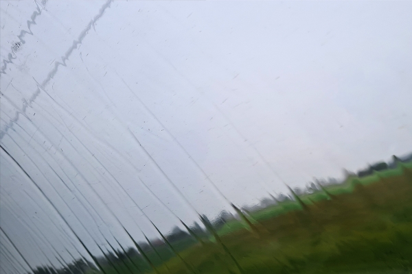lekker in de trein met kletterende regen